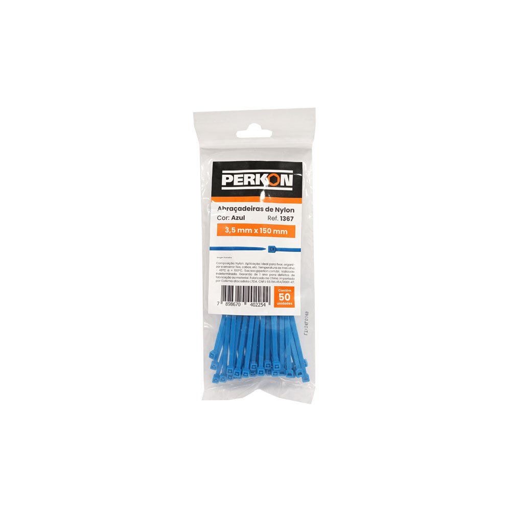 Abraçadeira Nylon PERKON Azul 3,5 x 150 mm – Kit com 100 Peças (Ref. 1367)