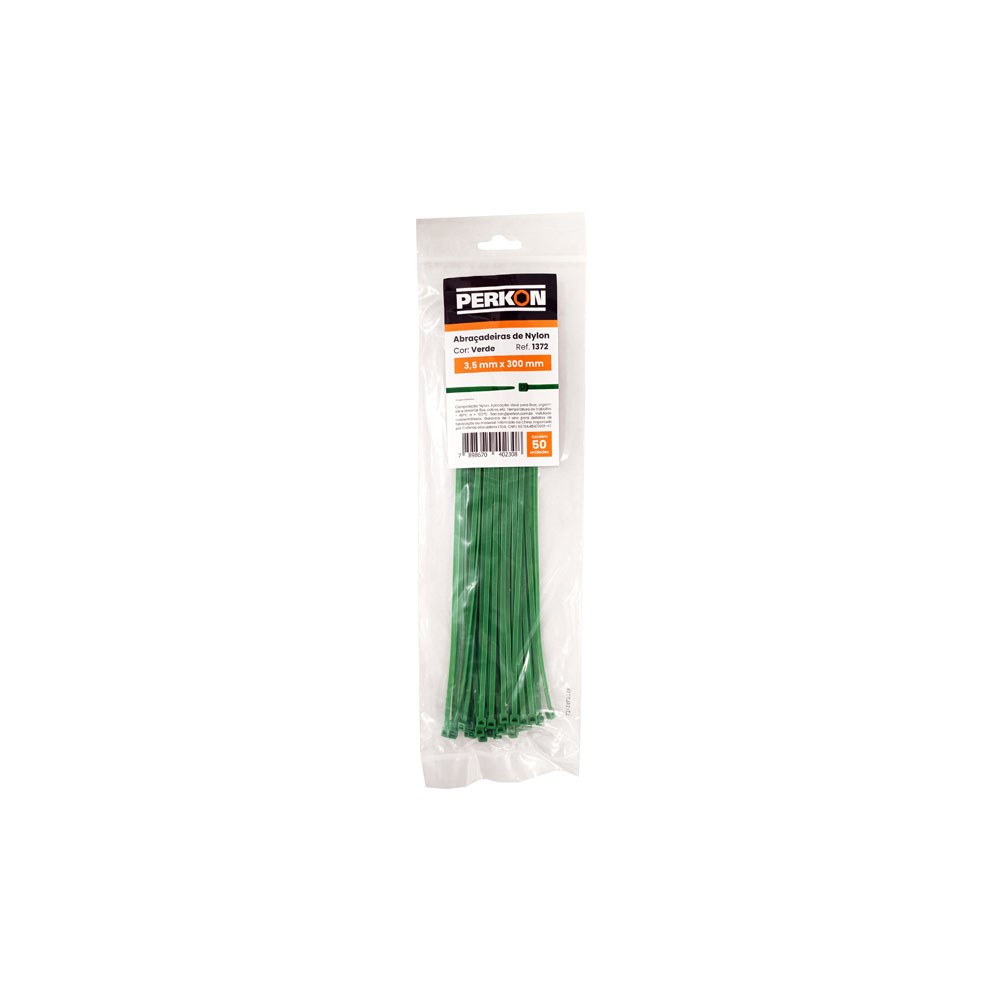 Abraçadeira Nylon PERKON Verde 3,5 x 300 mm – Kit com 100 Peças (Ref. 1372)