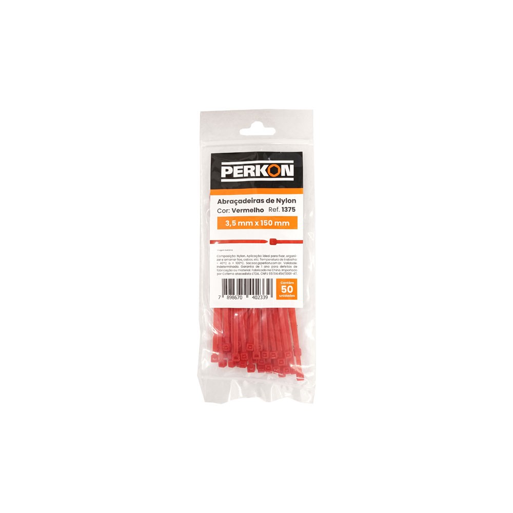 Abraçadeira Nylon PERKON Vermelha 3,5 x 150 mm – Kit com 100 Peças (Ref. 1375)