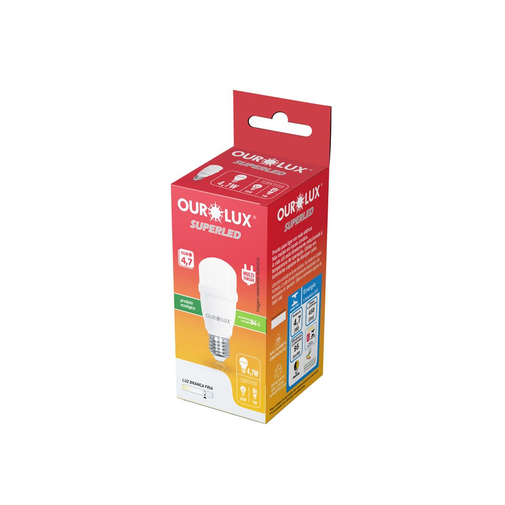 A Lâmpada LED Compacta Ourolux T 4,7W é ideal para quem busca economia de energia aliada a uma iluminação aconchegante. Com luz branca 6500K, proporciona conforto visual e um ambiente agradável, sendo perfeita para uso residencial ou comercial. Seu formato compacto tipo T permite fácil instalação em diversas luminárias, substituindo lâmpadas fluorescentes compactas com maior eficiência e durabilidade.