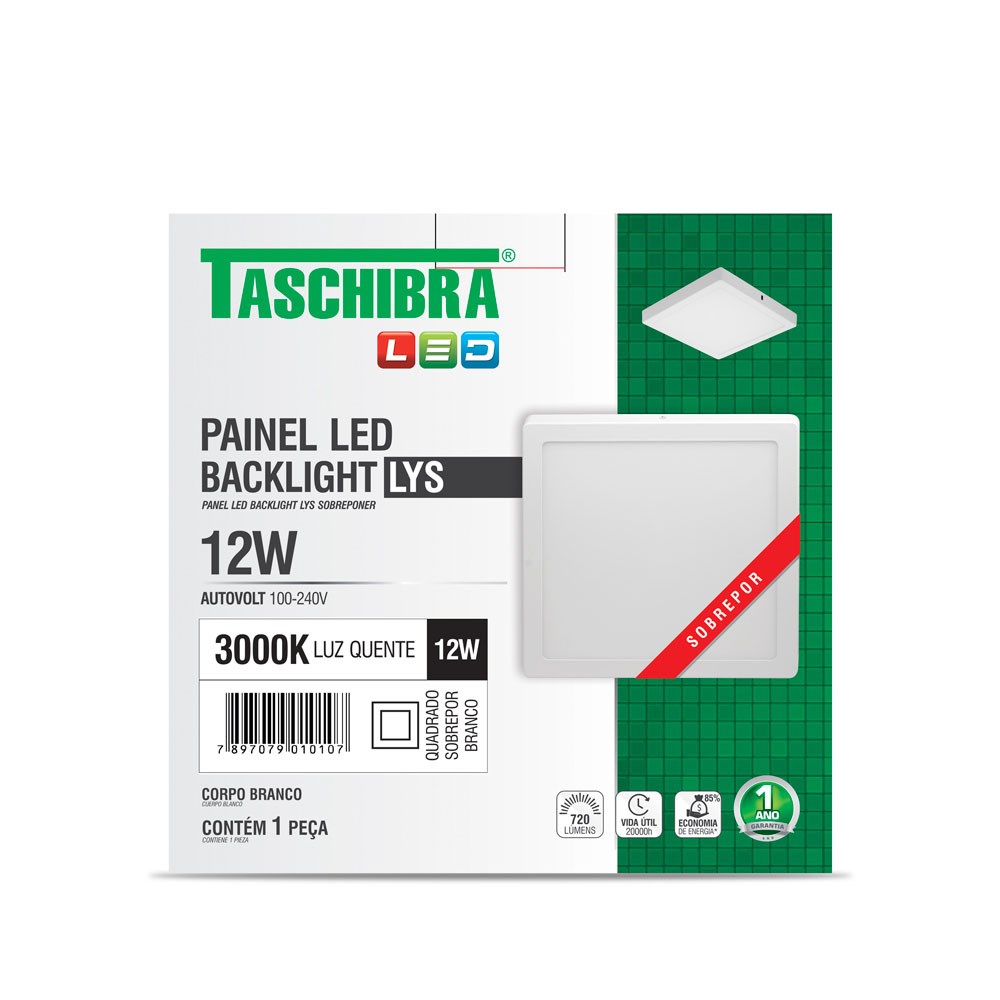 Luminária LED Plafon TASCHIBRA Lys Externo Quadrado 12W 3000K – 17 cm