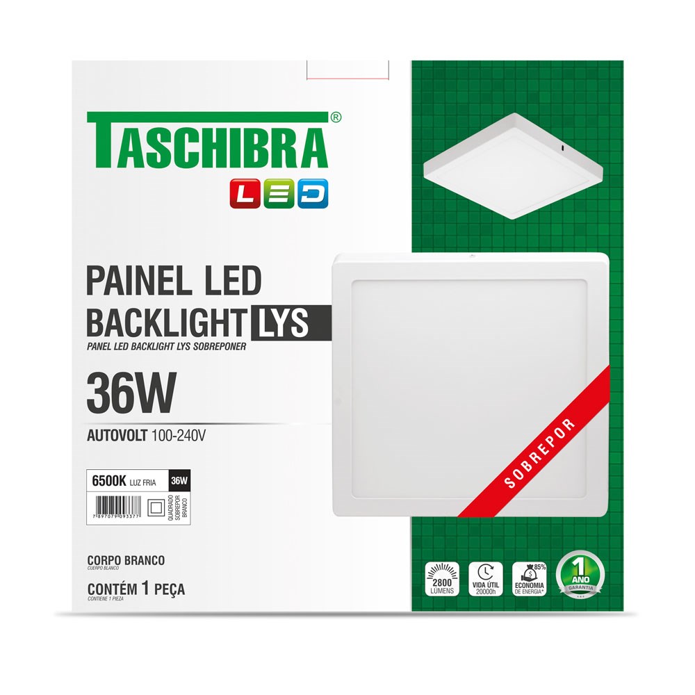 Luminária LED Plafon TASCHIBRA Lys Externo Quadrado 36W 6500K 40cm – Ref. 15140255