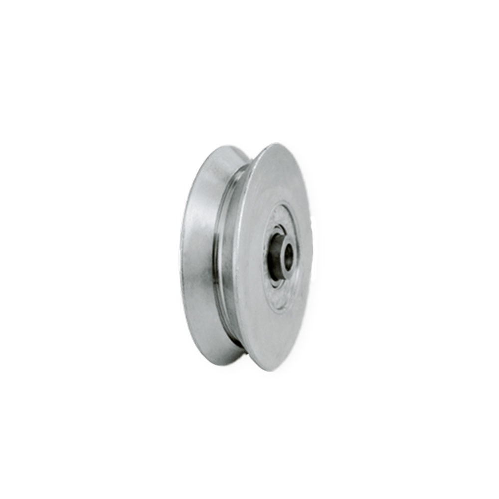 Fabricada em aço com acabamento zincado, oferece maior proteção contra corrosão e desgaste, sendo adequada para uso interno e externo. O canal em formato “V” garante encaixe preciso no trilho, enquanto o eixo furado facilita a instalação e a adaptação em diferentes sistemas.