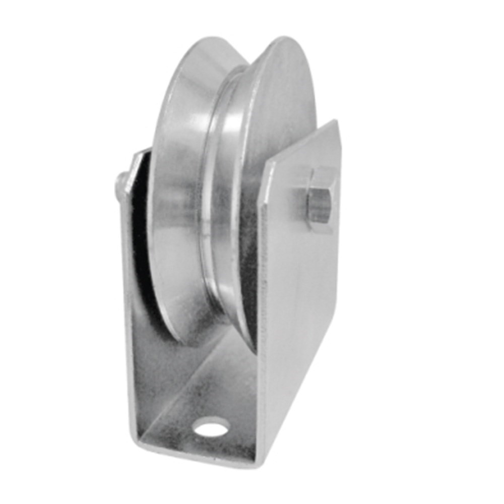 Fabricada em aço com acabamento zincado, oferece excelente proteção contra corrosão e desgaste, sendo adequada para uso interno e externo. O canal em formato “V” garante encaixe preciso no trilho, enquanto o suporte confere maior estabilidade e segurança ao conjunto. O eixo furado facilita a instalação e a adaptação em diferentes sistemas.